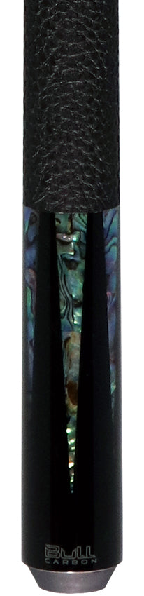 Bull Carbon Black with 6 Genuine Abalone Points Play Cue with Textured Leather Wrap