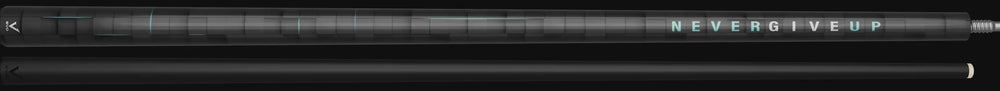 - Design: Carbon + Glass Fiber Construction That has a Graphic Overlay of Gray and Black Weave that has a 3-D Look to it. The Words "Never Give Up" grace the top of the Forearm of the Cue in White