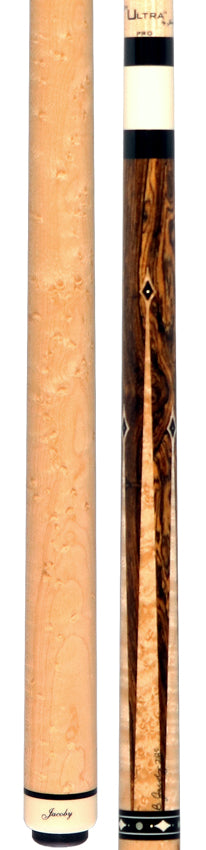 The wrap section is a seamless piece of premium Birdseye maple, offering a smooth, uninterrupted surface that enhances both grip and aesthetic. At the core of its performance is the Jacoby Black V4 carbon fiber shaft, engineered for remarkable accuracy and consistency. Paired with a Kamui Clear Black Soft tip, it provides unmatched cue ball control, a soft yet responsive touch, and the versatility to elevate any playing style.