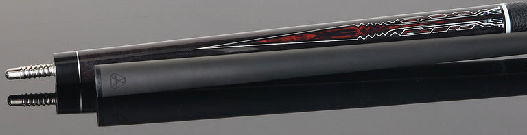 - Design: Gray Stained maple cue with red graphic points accented with black and gray giving it a sleek modern look