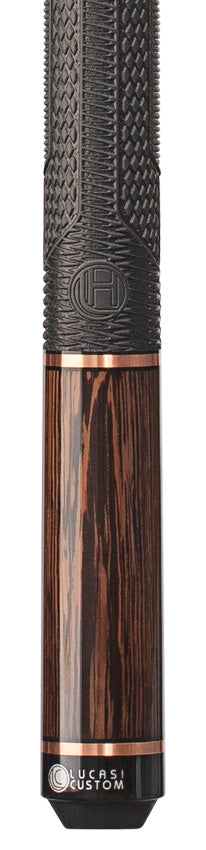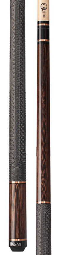 Lucasi Hybrid Exotic Black Palm with Hybrid 3mm Rose Gold Rings and Fusion G5 Sport Grip Wrap Pool Cue