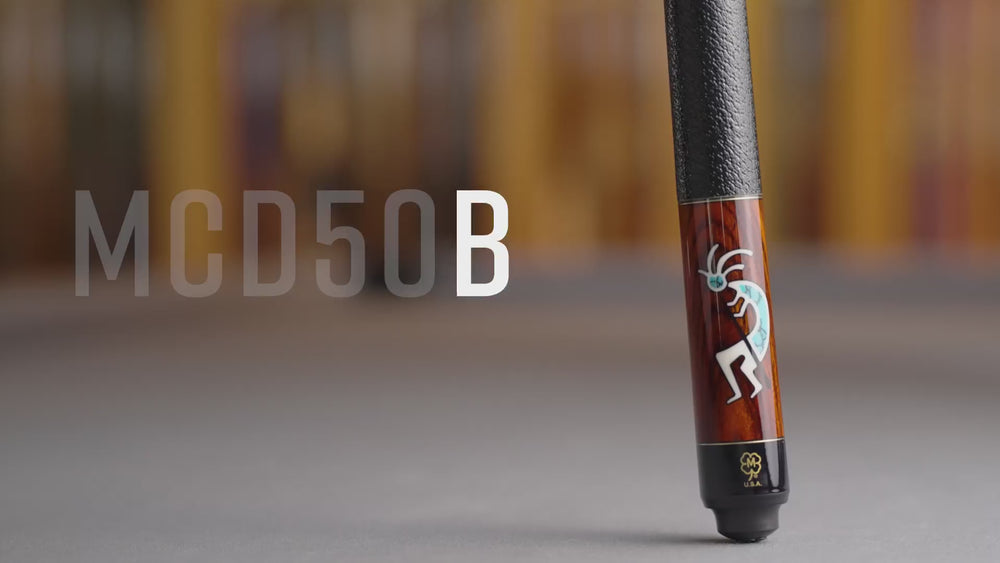Celebrate five decades of craftsmanship with the McDermott 50th Anniversary Series Cocobolo Cue. Featuring a finely crafted Cocobolo forearm and sleeve accented by a distinctive "Kokopelli" inlay with turquoise, white, and black urethane, this cue combines artistry and performance. Equipped with brass rings and a precise 3/8"-10 joint, it incorporates the G-Core high-performance shaft for exceptional accuracy and control. The package includes a commemorative 1x1 case bearing the anniversary logo, making it both a collector’s item and a top-tier playing cue.