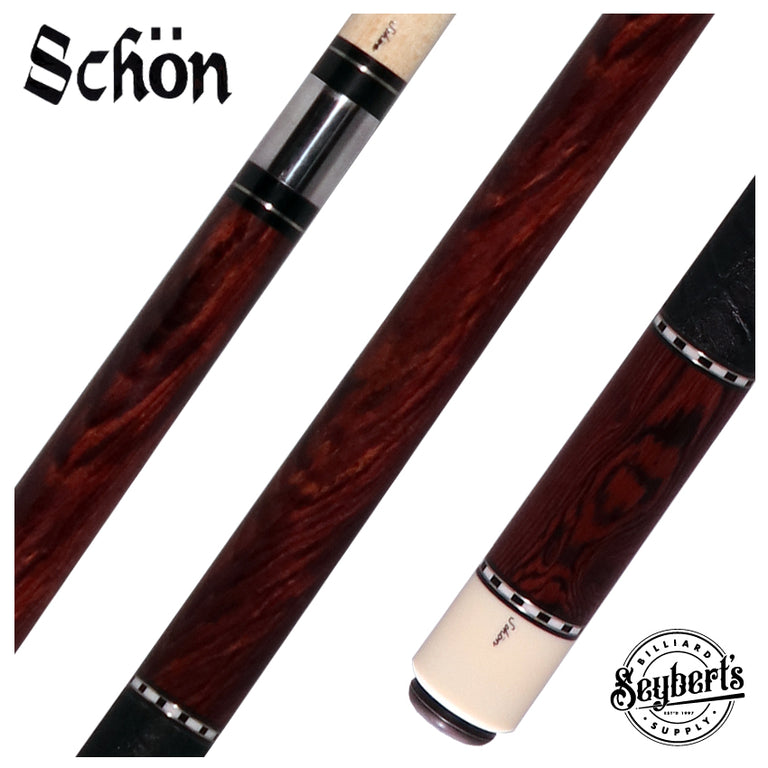 The Schon STL1 Cue is a timeless expression of craftsmanship and performance, meticulously constructed from rich Brazilian Kingwood, known for its deep, lustrous grain and exceptional tonal qualities. Elegantly trimmed with nickel silver and accented by classic checkered rings, this cue blends traditional style with enduring sophistication.