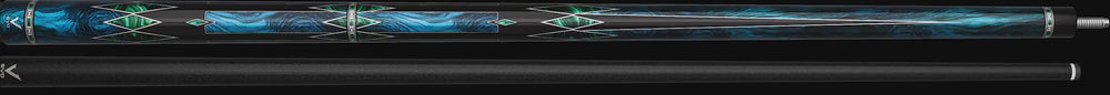 The cue itself is a statement of modern precision, crafted from carbon and glass fiber construction with a stunning graphic overlay of blue-stained wood accented by malachite diamonds that flow elegantly across the forearm and butt sleeve. The 29" glass fiber shaft with a Hybrid Pro Taper and 12.50mm diameter delivers a smooth, consistent stroke, while the 5/16 x 18 joint ensures a solid, responsive connection. No wrap, no distractions—just performance, precision, and power in one complete kit.