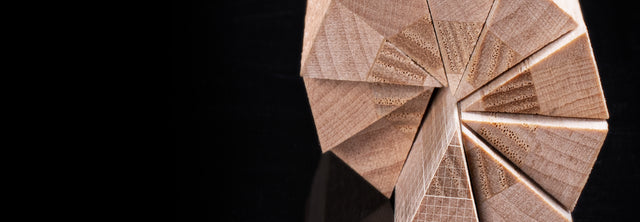 - Alternating Curly Maple and Bocote strips that have been stained with a golden hue